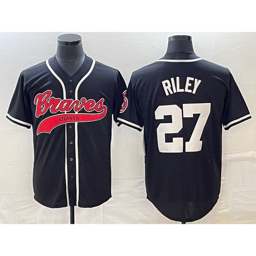 A.Braves #27 Austin Riley Black Cool Base Stitched Baseball Jersey